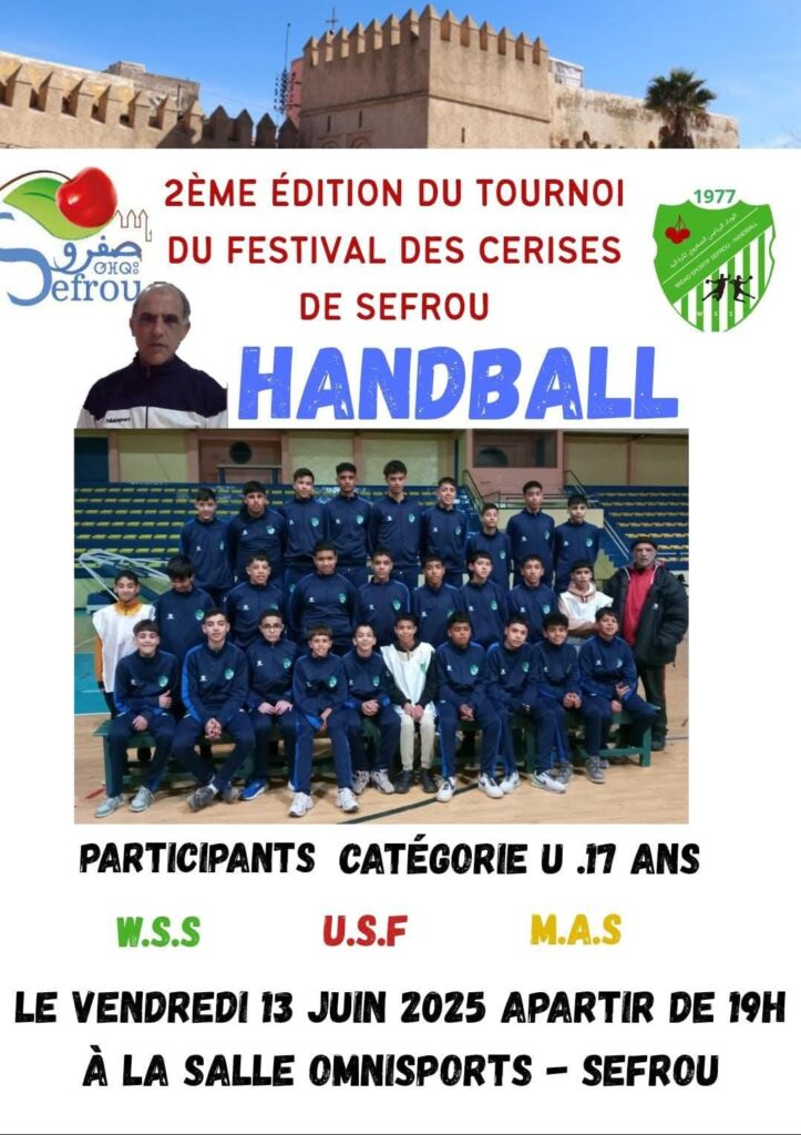 - دوري حب الملوك لكرة اليد، من تنظيم الوداد الرياضي الصفريوي لكرة اليد، والذي سينطلق هذا المساء ابتداء من الساعة 19.