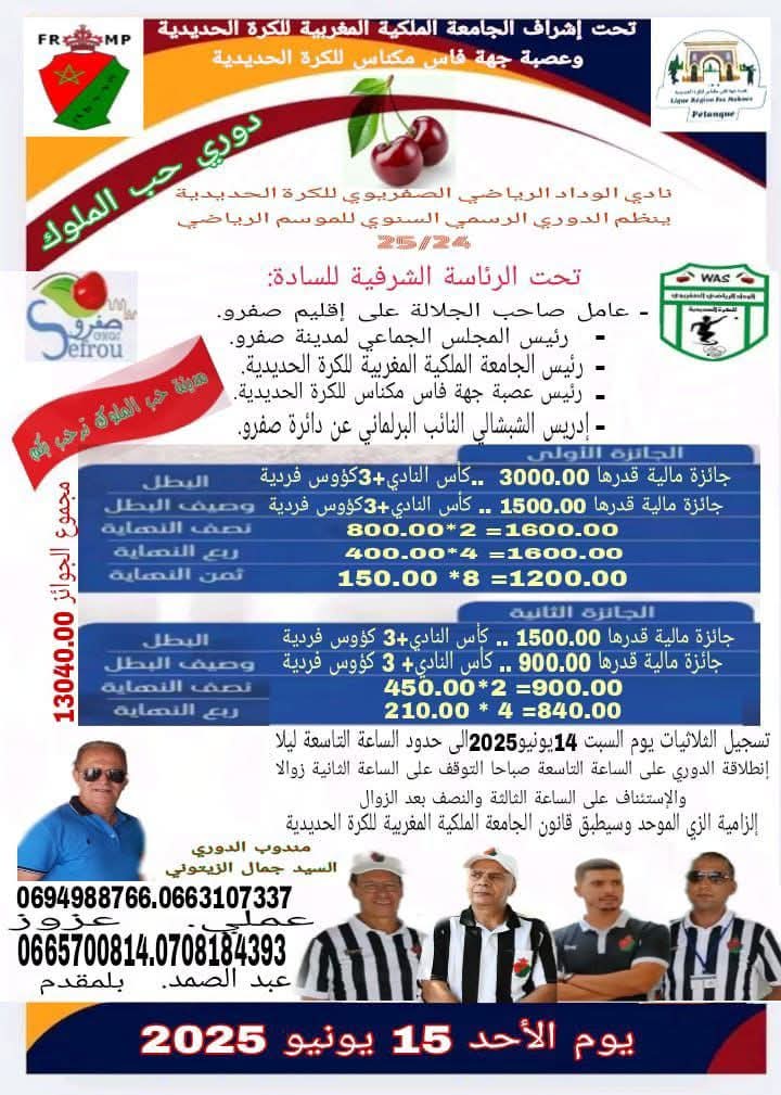 - النسخة الثانية من دوري حب الملوك في الكرة الحديدية، المقرر انطلاقه يوم الأحد 15 يونيو 2025.