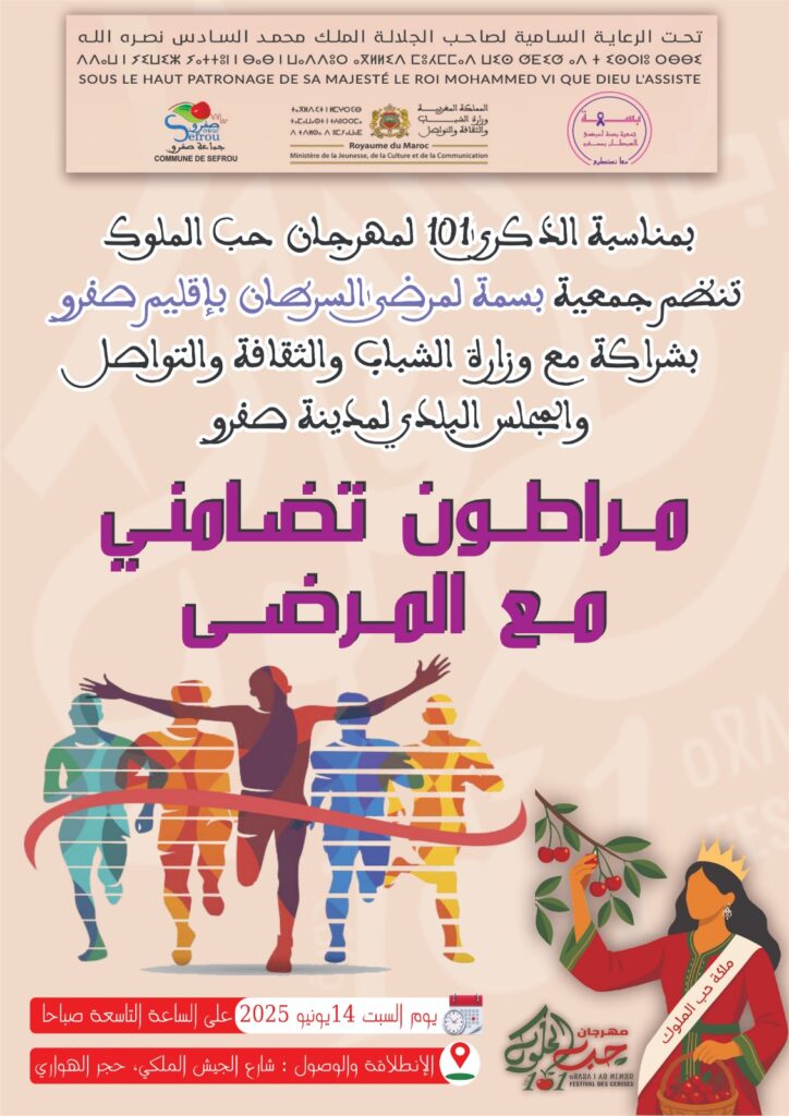 - ماراطون تضامني لفائدة مرضى السرطان، أطلقته جمعية بسمة لمرضى السرطان، والذي سيقام غدا صباحاً على الساعة ال 09.